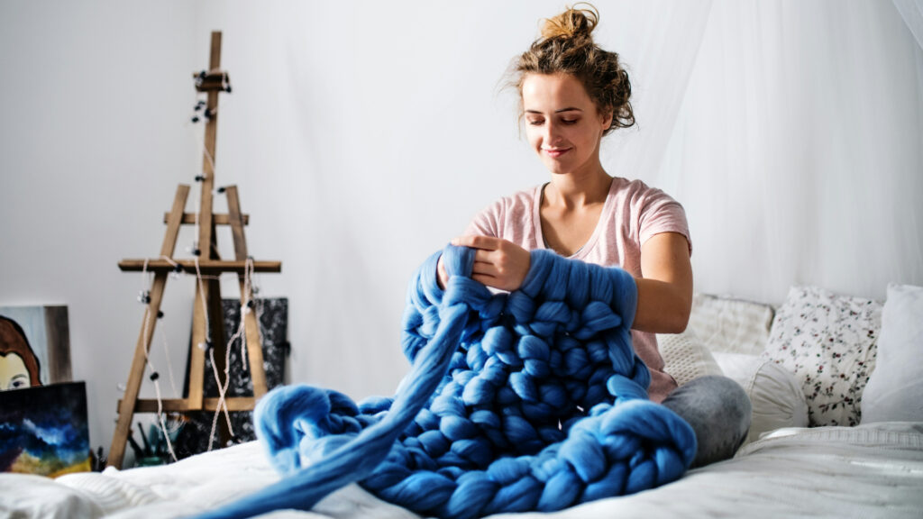 Έναν άνετο χώρο. Εμένα μου αρέσει πολύ η άνεση του μεγάλου κρεβατιού μου για να πλέκω