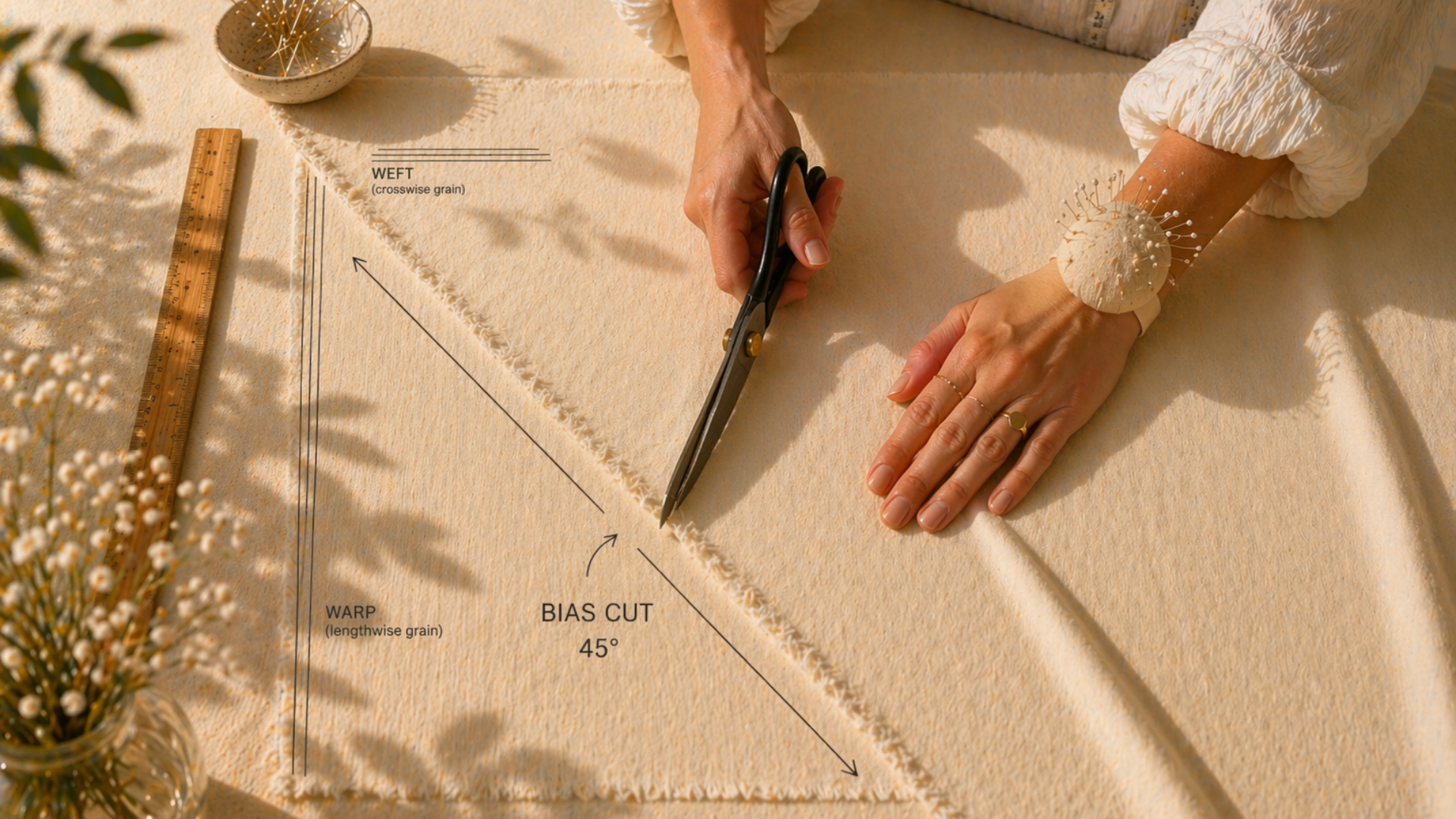 Φαντάσου ένα τετράγωνο κομμάτι ύφασμα. Αν το κόψεις ίσια, οριζόντια ή κάθετα, μένει σταθερό και σχετικά άκαμπτο. Αν όμως το κόψεις διαγώνια, στις 45°, ξαφνικά αποκτά κίνηση: γίνεται πιο μαλακό, πιο εύκαμπτο, ακολουθεί το σώμα. Αυτή είναι η λοξή ή διαγώνια κοπή, γνωστή διεθνώς ως bias cut.