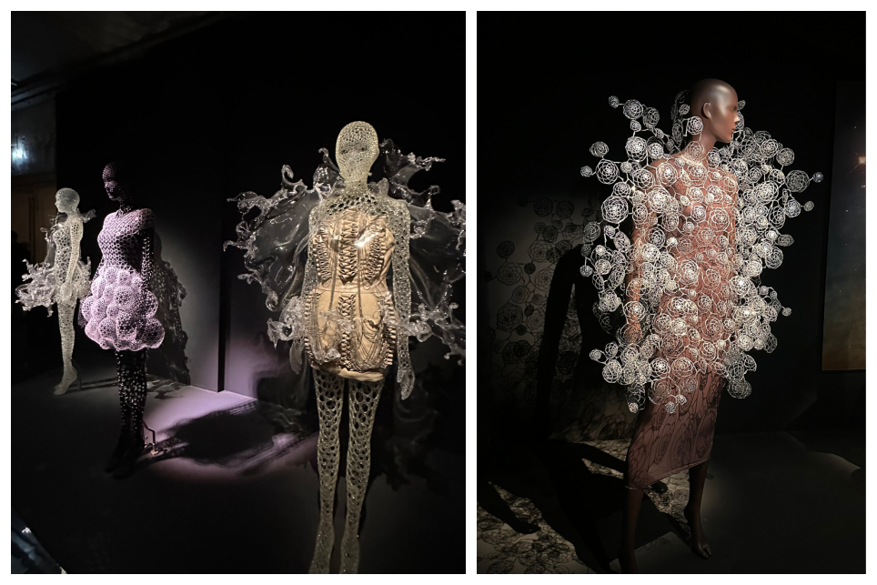 Η Iris Van Herpen ήταν από τις πρώτες που εισήγαγαν την τεχνολογία της 3D εκτύπωσης στη μόδα. Τα φορέματά της θυμίζουν γλυπτά ή αρχιτεκτονικές κατασκευές, μεταμορφώνοντας το ύφασμα σε κάτι που μοιάζει σχεδόν εξωπραγματικό. Οι δημιουργίες της συχνά εξερευνούν τη σχέση ανάμεσα στο σώμα και την τεχνολογία, το οργανικό και το τεχνητό.