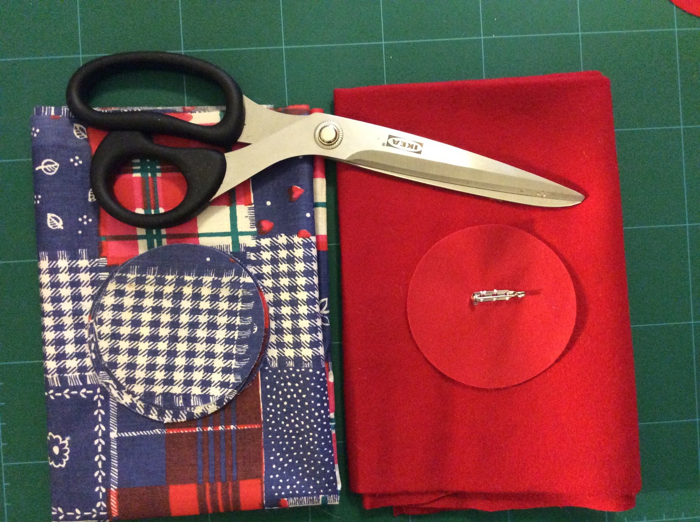Χρησιμοποιώντας ένα template (καπάκι, χαρτόνι κτλ) σχεδιάσε και κόψε ένα χάρτινο κύκλο με διάμετρο 7cm και χρησιμοποιησέ τον ως πατρόν για να κόψεις όσους υφασμάτινους κυκλους χρειάζεσαι από το ύφασμα και το φελτ.