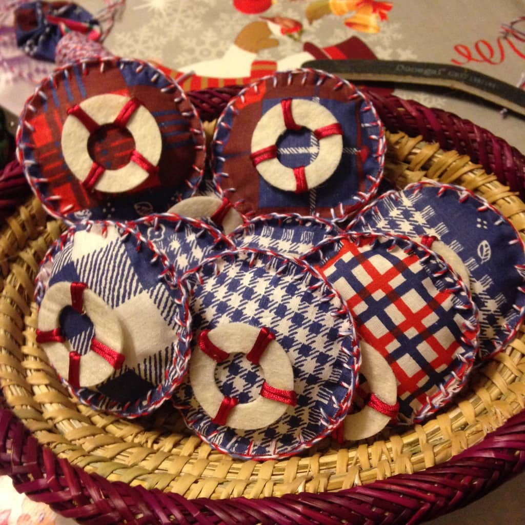 Σήκωσα λοιπόν, τα μανίκια και αποφάσισα να βγω για λίγες ώρες από το Christmas mood… και να μπω σε ναυτικό! Άνοιξα τα κουτιά και τα συρτάρια με τα υφάσματα μου και μετά από λίγη σκέψη αποφάσισα να φτιάξω ναυτικές καρφίτσες που θα μπορούσαν να φορεθούν κατά τη διάρκεια του party αλλά και να μείνουν ως ενθύμιο.